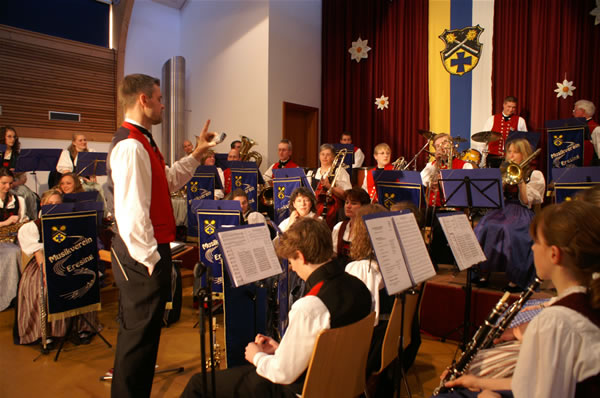 Vor dem Konzert überprüft Jürgen die richtige Stimmung der Blasinstrumente.