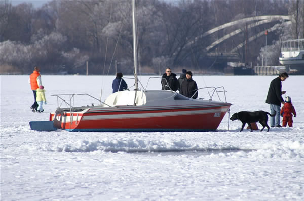 Diese eingefrorene Segelyacht war ein beliebtes Fotomotiv.